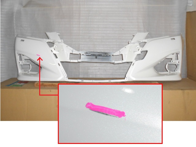 | H27/9~H30/6。 ヘッドW穴有り。 左右分割スポイラー(後付け)取付跡(ビス穴)有り。 裏番-30K40。 裏側小パーツ1ヶ外れ。 右側中部5cmスリキズ。 上部印部小ヒビ修理有り。 |
